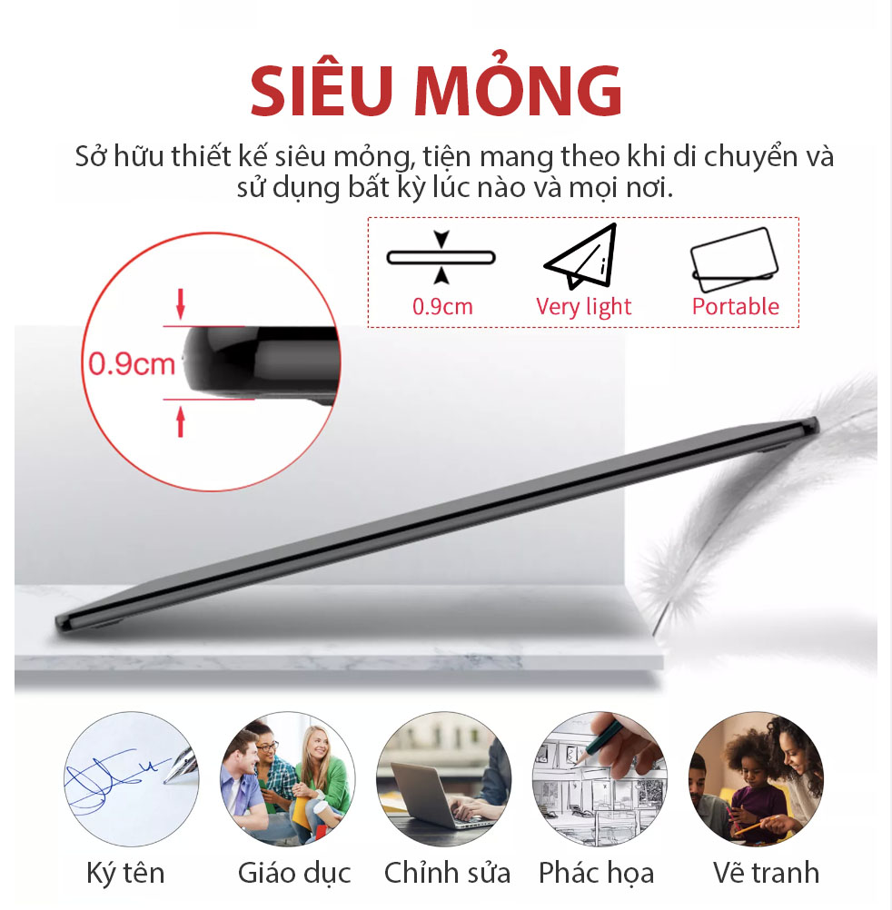 Bất kể bạn thuận tay phải hay tay trái, chiếc bảng vẽ a15 siêu lớn 10x6inch này có thể dễ dàng chuyển đổi. Thân máy mỏng chỉ 9mm và nhẹ rất tiện để mang theo khi di chuyển.