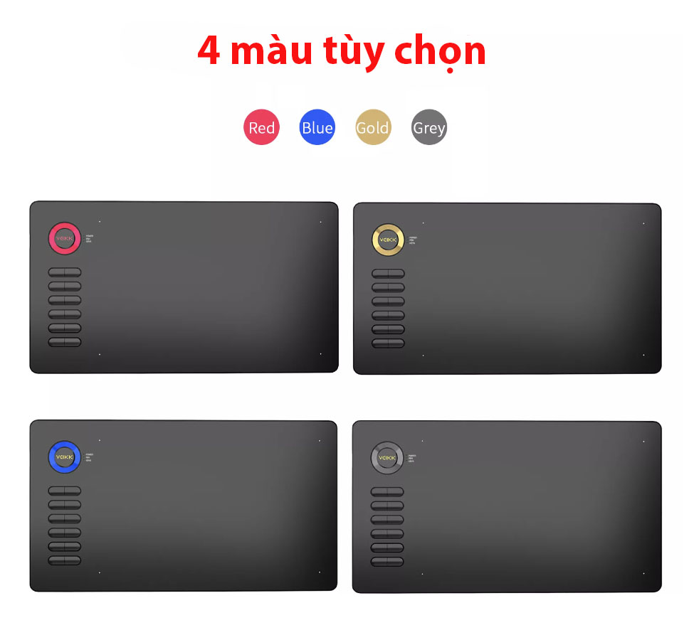 Bảng vẽ Veikk A15 có 4 màu thời trang: Xanh dương, xám, đỏ, vàng gold