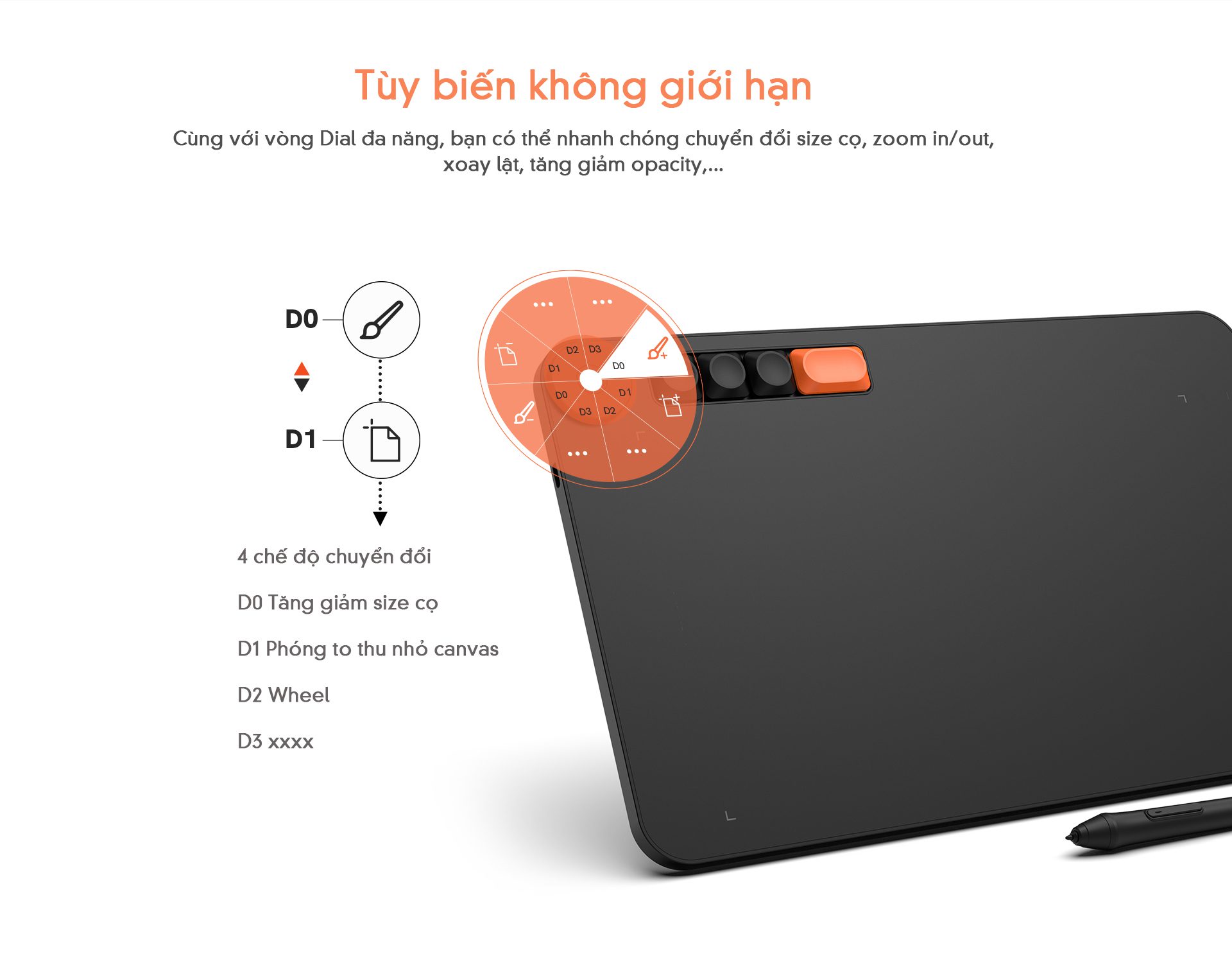 Vòng xoay dial đa năng có thể cài đặt tùy chỉnh theo thói quen sử dụng của bạn như: phóng to/thu nhỏ, cuộn lên/xuống, v.v… giúp cải thiện đáng kể trải nghiệm sử dụng và tiết kiệm thời gian, để bạn hoàn toàn tập trung vào công việc sáng tạo.