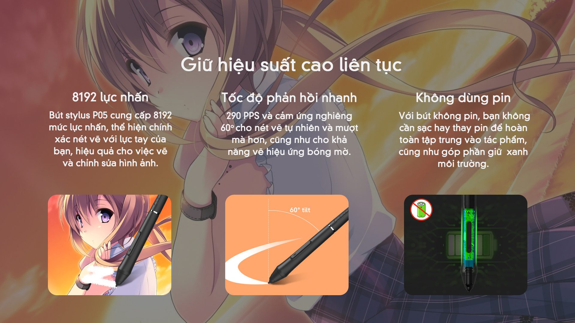 Lực nhấn bút: 8192 mức