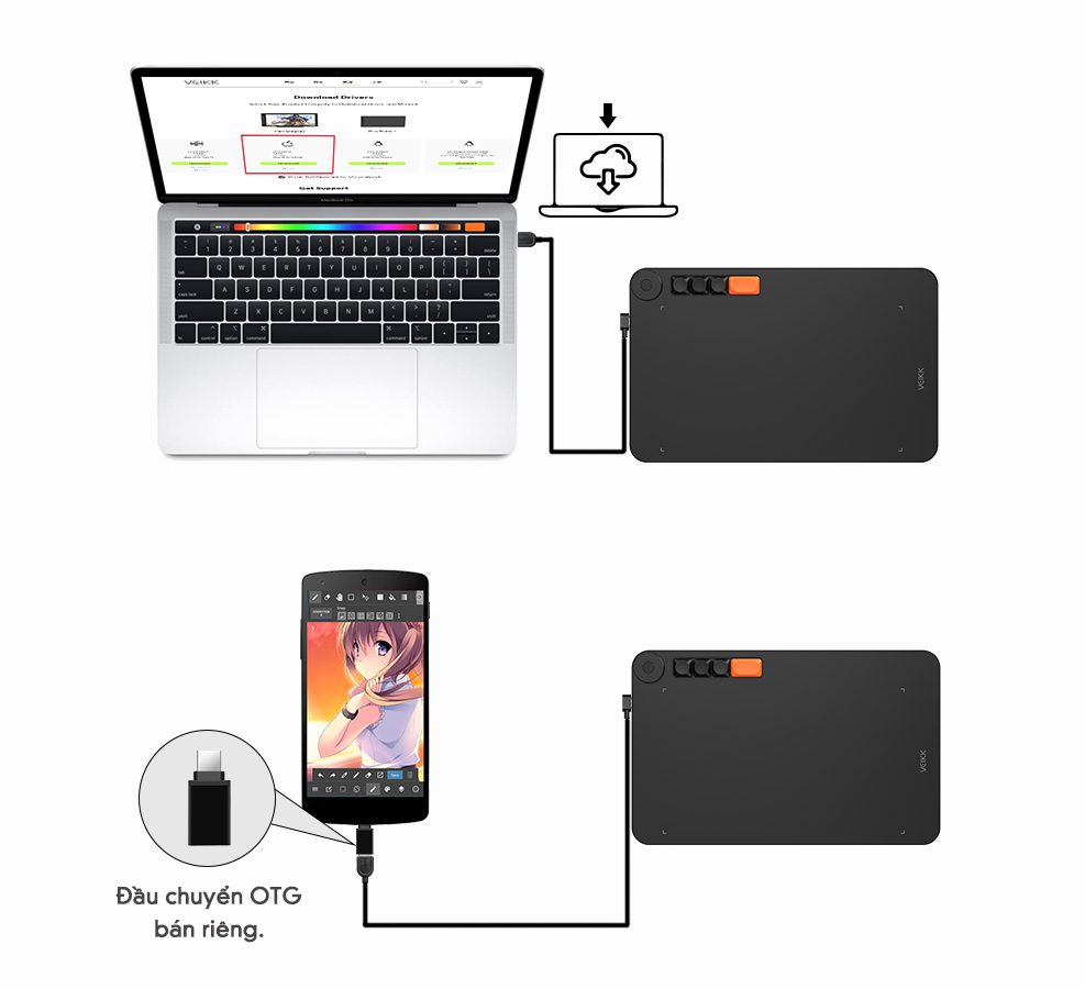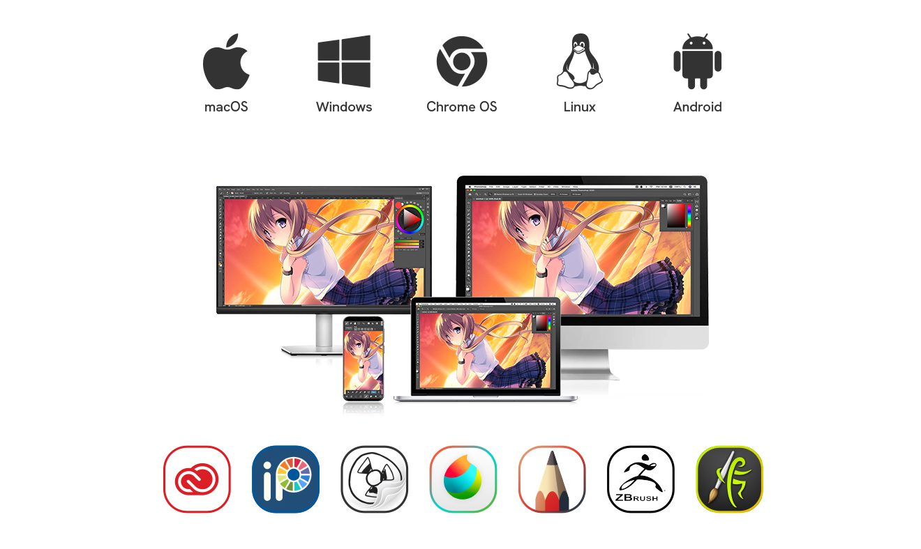 Bảng vẽ VEIKK hỗ trợ mọi hệ điều hành như Windows 7/8/10/11(32/64 bit) trở lên, Mac OS 10.12 trở lên, Linux, Chromebook kể cả điện thoại và tablet Android từ 6.0 trở lên (kết nối qua đầu chuyển OTG*); cũng như tương thích với hầu hết các phần mềm, bao gồm phần mềm Adobe Creative, ibis Paint X, FlipaClip, Medibang, Autodesk Sketchbook, Zbrush, Artrage, v.v… Khả năng tương thích rộng rãi của bảng vẽ này mở rộng tầm nhìn sáng tạo của bạn.