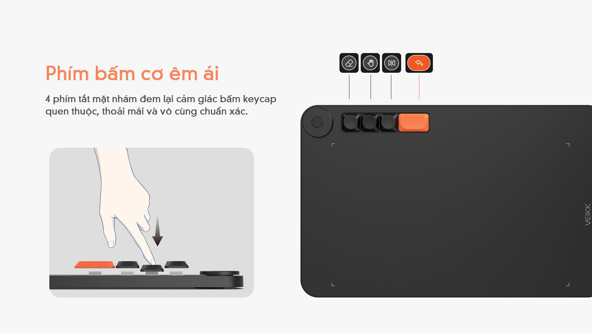 So với các bảng vẽ khác, bảng vẽ Voila L có 4 phím tắt mờ tùy chỉnh giống với phím trên bàn phím máy tính, mang lại cảm giác gõ quen thuộc, thoải mái và cực kỳ chính xác.