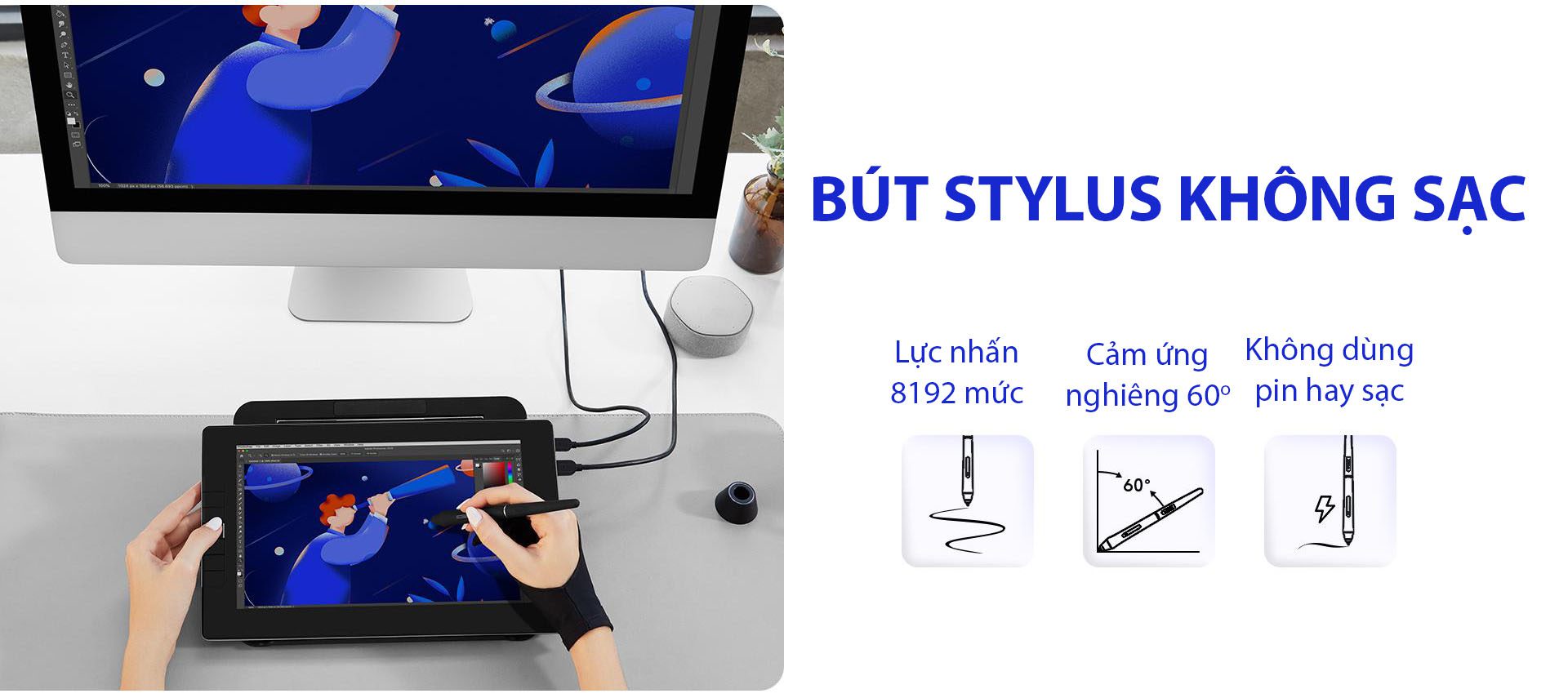 Màn hình & bút độ nhạy cao, cung cấp khả năng điều khiển chính xác, giảm thiểu hiện tượng lệch trỏ chuột.