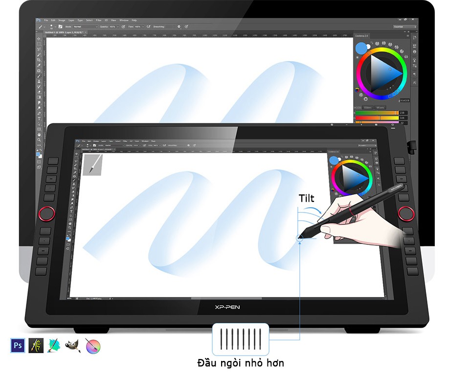 XP-Pen đã chính thức ra mắt mẫu bảng vẽ mới vô cùng tuyệt vời, Artist 22R Pro với màn hình lớn 21.5 inch trang bị màn hình fullHD 1080p cho phép bạn vẽ, thiết kế trực tiếp trên mặt màn hình, với hàng loạt cải tiến về tính năng nhằm đem đến một mẫu bảng vẽ cao cấp cho giới họa sĩ đồ họa digital chuyên nghiệp như bút stylus PA2 đời mới không cần sạc, chân đế tùy chỉnh bằng 1 tay, 2 vòng xoay dial, hỗ trợ cảm ứng nghiêng, cáp nối Type C tiện lợi...