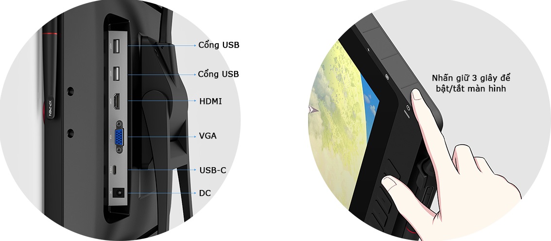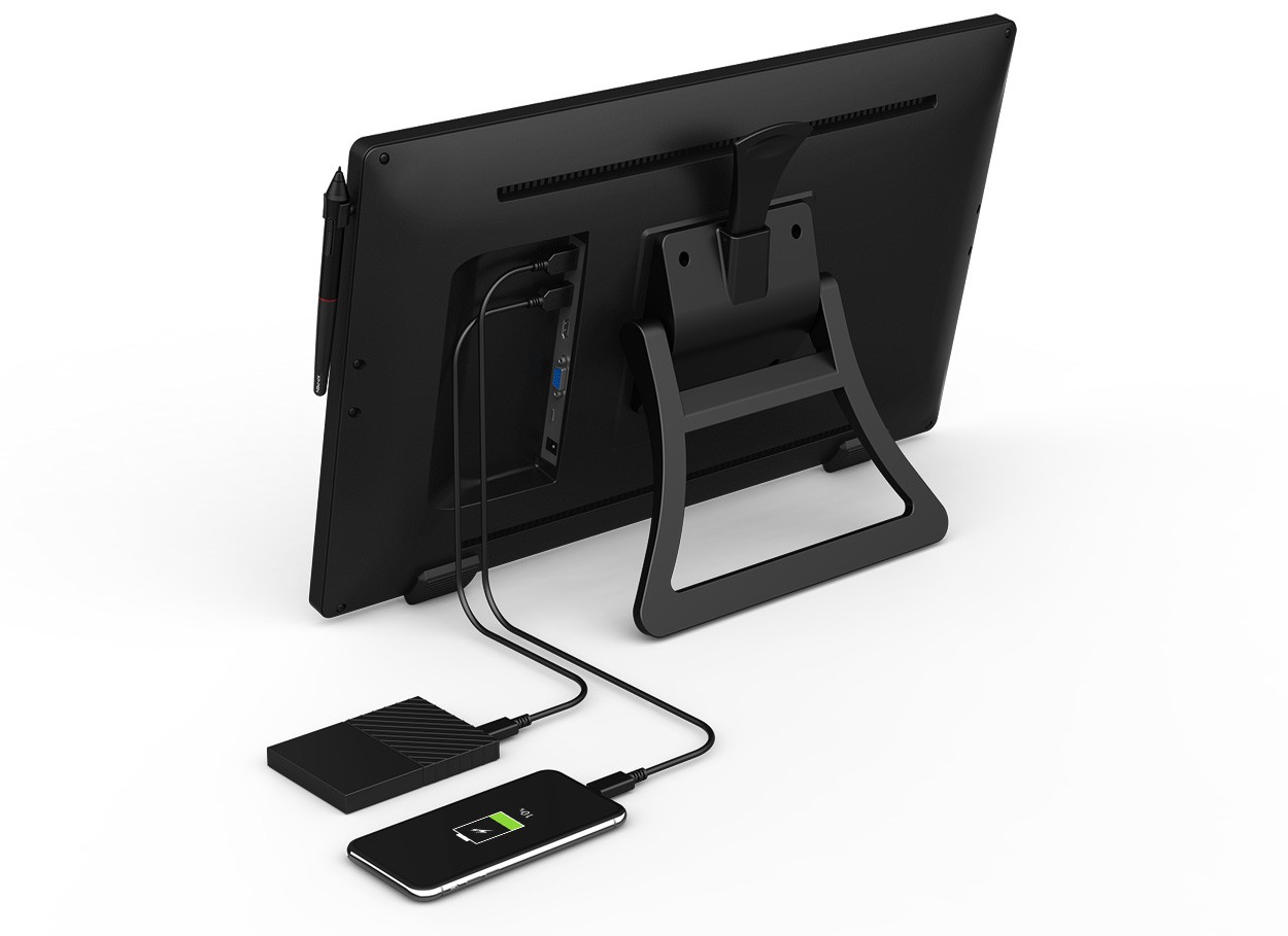 Bảng vẽ Artist 22R Pro trang bị cổng USB có thể cắm chuột hay các thiết bị khác. Cũng như các phím bấm tinh chỉnh bằng cảm ứng đem lại cho chiếc bảng vẽ màn hình cảm quan sang trọng với thao tác nhã nhặn, tránh phát ra tiếng ồn như phím bấm vật lý.