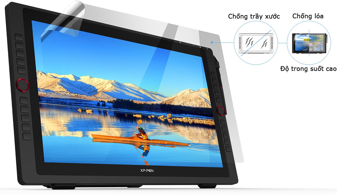 XP-Pen 22R Pro được dán sẵn một lớp film bảo vệ màn hình và giảm độ lóa sáng, luôn giữ cho màn hình hiển thị tươi sáng và bóng bẩy.
