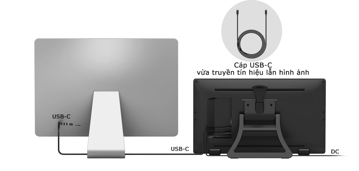 Bạn cũng có thể kết nối 22R Pro với máy tính thông qua cáp HDMI/VGA, đầu chuyển USB-C sang USB và adapter nguồn điện.