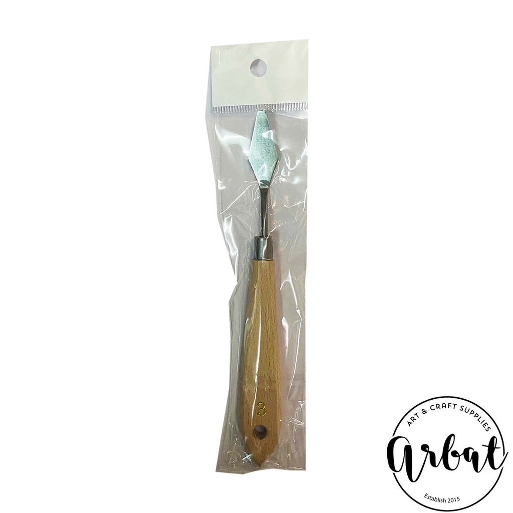 Bay cán gỗ trong mỹ thuật là một loại công cụ thủ công dùng để trộn, trát hoặc tạo hiệu ứng bề mặt trong các kỹ thuật như vẽ sơn dầu, sơn acrylic, hoặc làm tranh phù điêu. Phần lưỡi bay thường được làm từ thép không gỉ hoặc kim loại mềm, có hình dạng dẹt và hơi cong, giúp thao tác linh hoạt trên bề mặt tranh hoặc nền chất liệu. Cán gỗ được thiết kế vừa tay, tạo cảm giác chắc chắn và thoải mái khi sử dụng, đồng thời giúp kiểm soát tốt lực và hướng khi miết màu hoặc trát vật liệu.