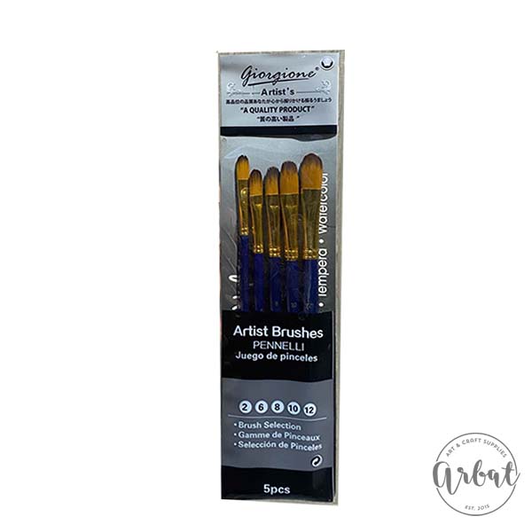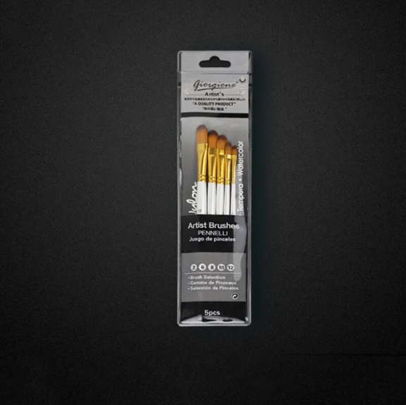 Bộ gồm 5 cây cọ đa dạng kích thước (ví dụ: số 2, 6, 8, 10, 12) phù hợp với nhu cầu vẽ chi tiết và tô mảng.
