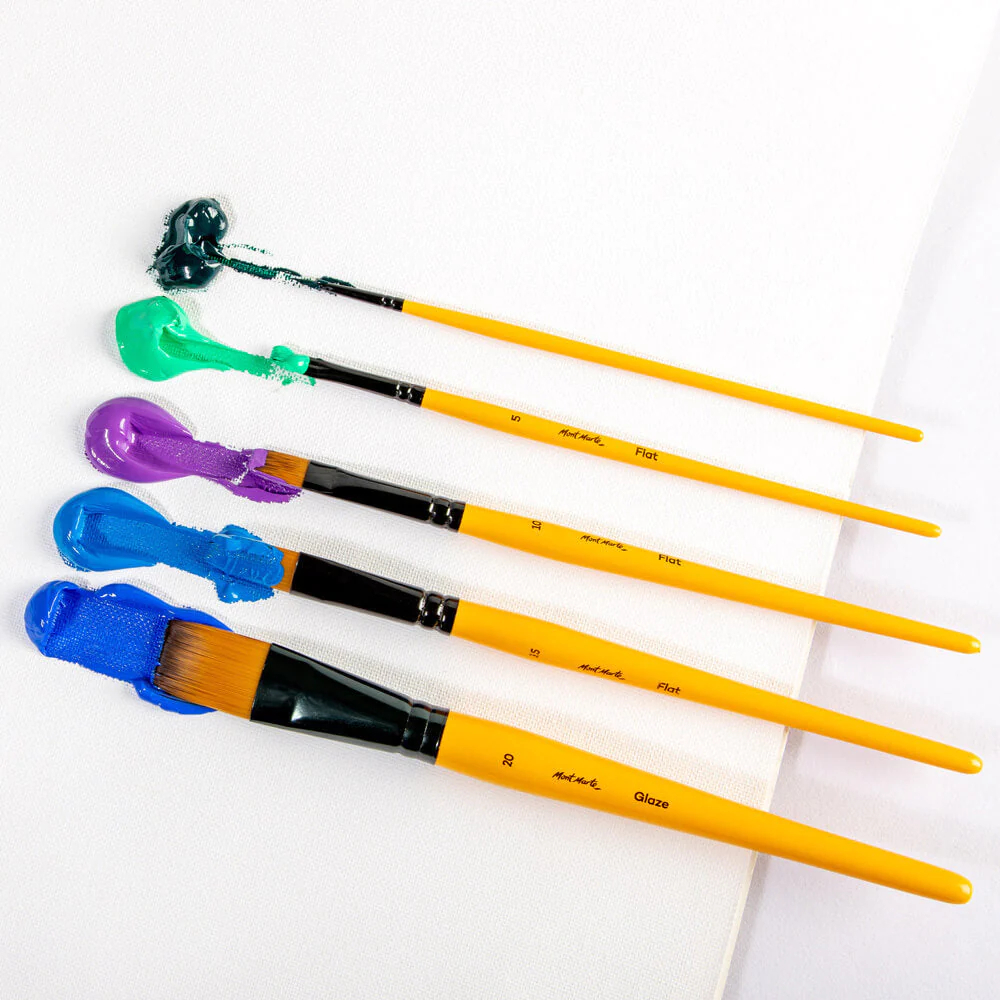 Cọ Acrylic Mont Marte được đóng thành bộ nhiều cây, chia ra làm nhiều loại khác nhau: