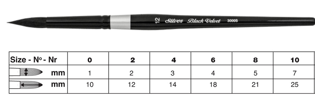 Dòng cọ Velvet của hãng Silver Brush nổi tiếng là cọ cao cấp với thiết kế đặc biệt kết hợp giữa cọ lông sóc tự nhiên và lông nhân tạo màu đen. Sự kết hợp giữa lông tự nhiên và nhân tạo giúp giữ được lượng lớn màu và giải phóng màu với sự kiểm soát hoàn hảo. Độ mềm mại của lông cọ cho phép các kỹ thuật như tráng men, đắp nhiều lớp nhưng vẫn đủ để lấy màu bằng việc chà nhẹ nhàng. Velvet là dòng cọ nhung đen hoàn hảo để nghệ sĩ làm với mực, bột màu, acrylic, màu nước và thuốc nhuộm. Một dụng cụ tuyệt vời cho nghệ sĩ multi-media.