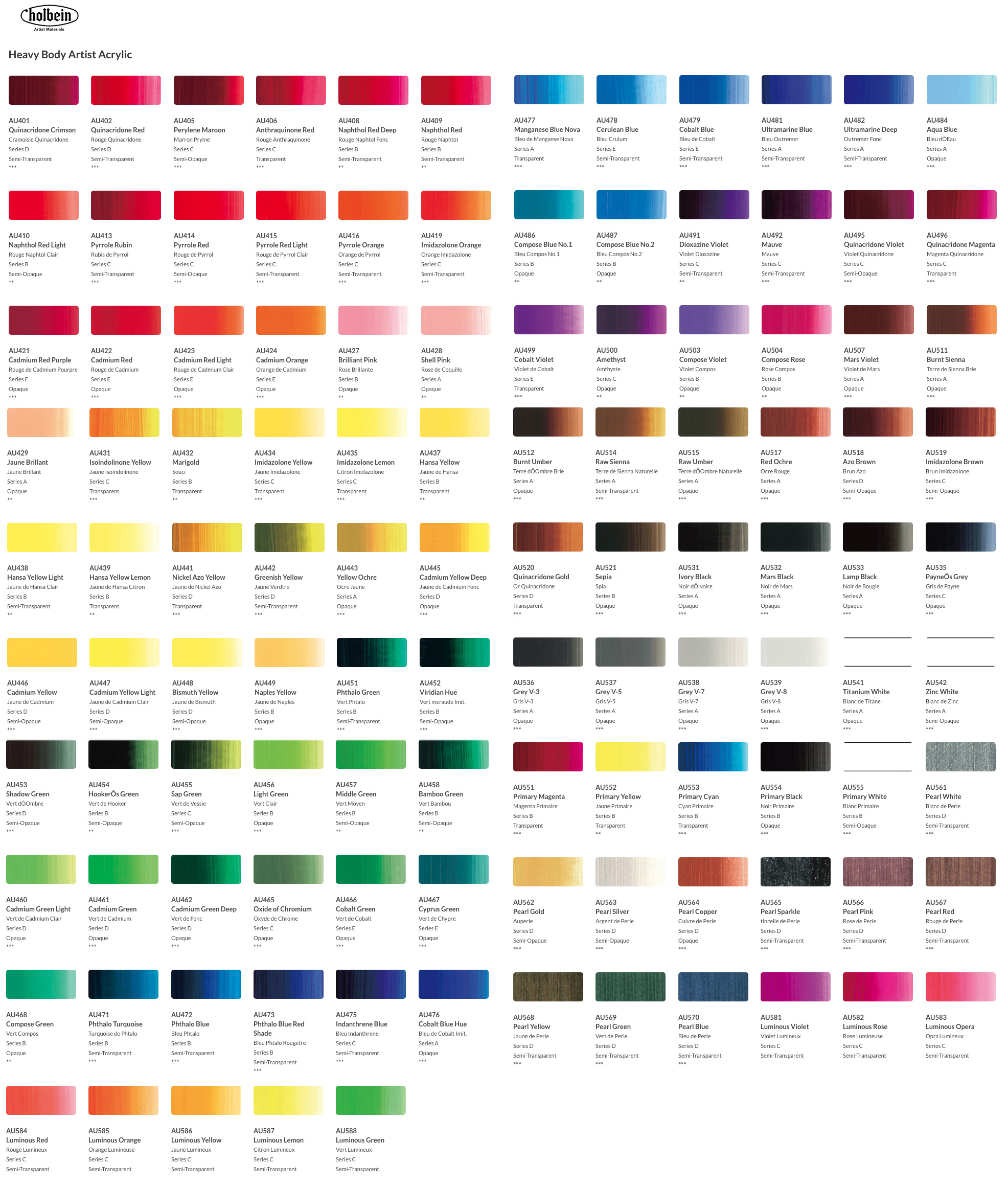 Với màu Heavy body đến từ Holbein bạn có thể thoả sức đắp nhiều lớp dày bằng cọ hoặc bay vẽ, đây là dòng màu thuộc hạng hoạ sĩ với đặc tính màu tươi, rực rỡ, có thể hoà trộn nhiều màu mà vẫn không bị xỉn. Bạn có thể hoà ít màu và nhiều nước hơn để cho ra các kết cấu mỏng, vì lượng pigment đậm đặc nên chỉ cần một ít màu là đủ. Màu acrylic của Holbein có thời gian khô không quá nhanh, đủ thời gian để bạn làm việc, có thể dùng chung với sơn dầu, vẽ trên giấy hay khung canvas đều được.