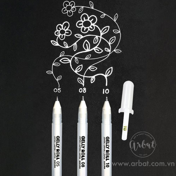 Gelly Roll trắng được ưa thích bởi khả năng sử dụng linh hoạt, đầu bút chỉ 0.5 mm cho ra nét nhỏ nhất, mức giá vô cùng nhẹ nhàng mà vẫn tạo được các nét bút có độ trắng vừa phải.